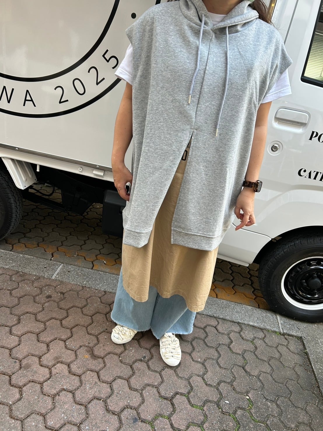 ロング丈のノースリーブパーカー